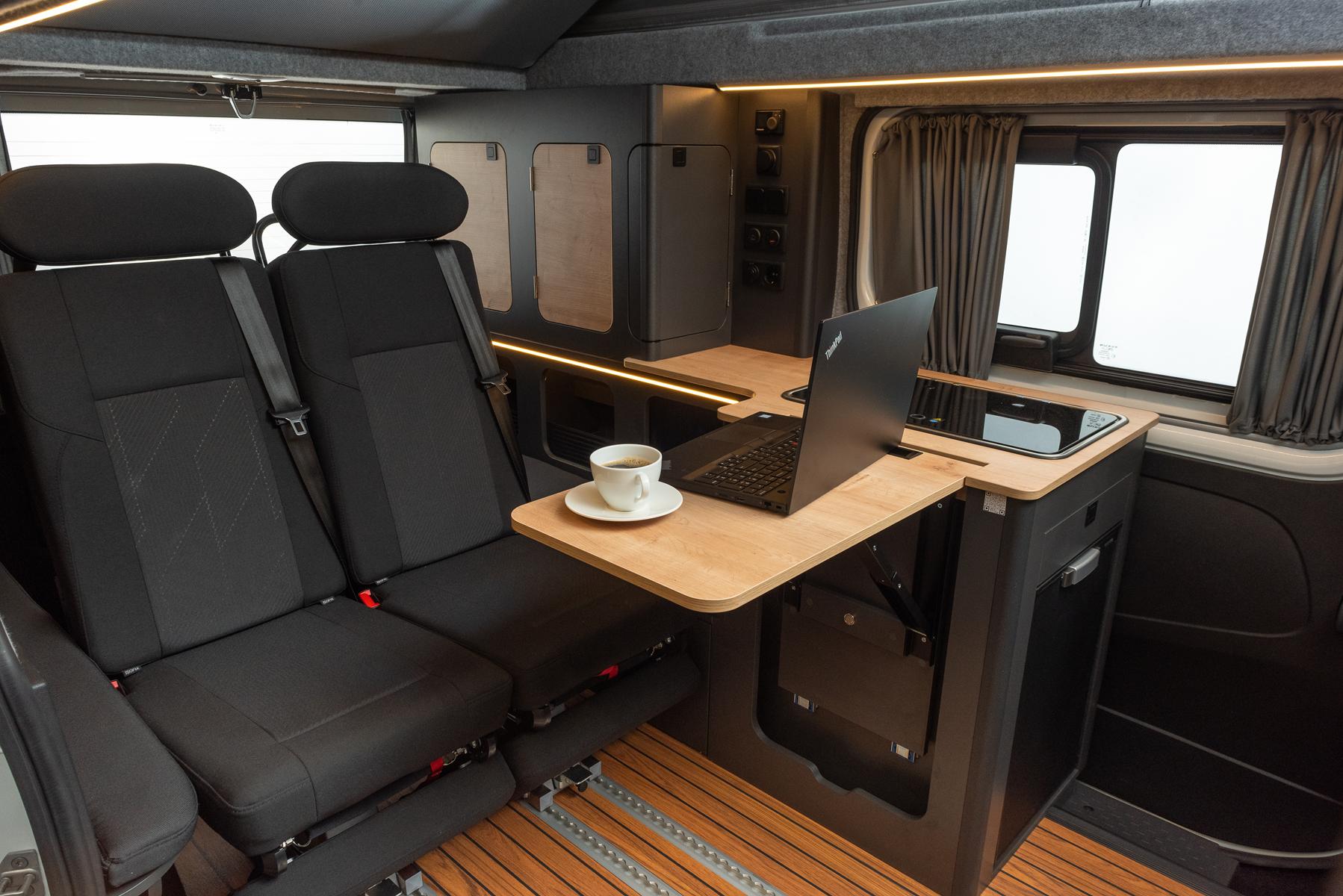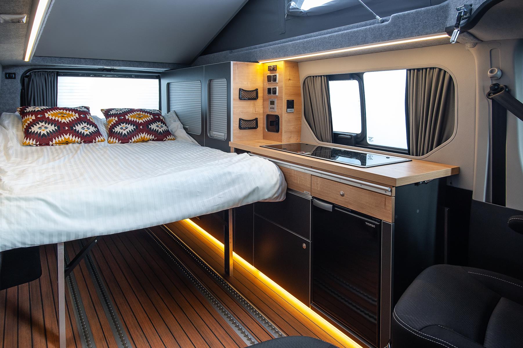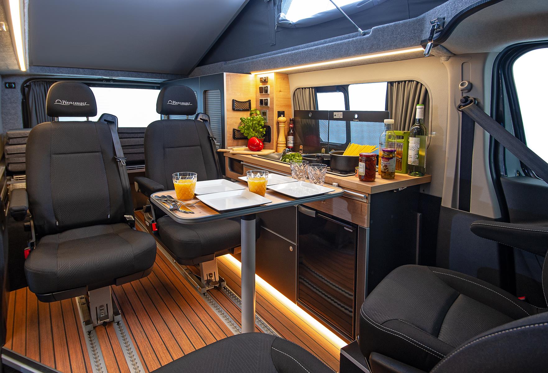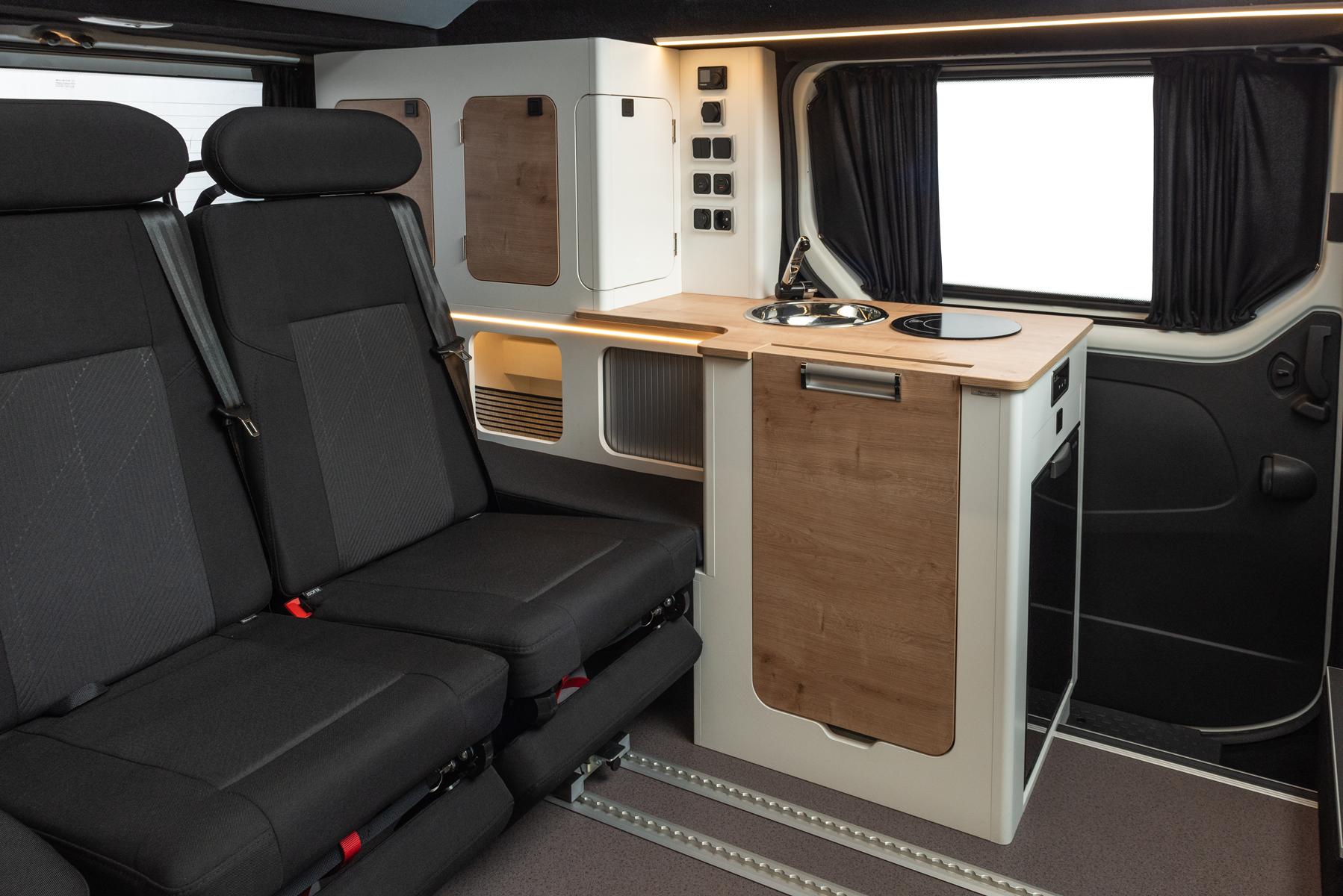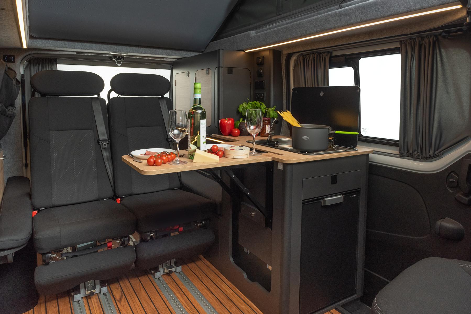 A new model featuring sliding doors on both sides of the vehicle and convenient outside access to the kitchen. Its innovative seats not only convert into a bed but also provide outstanding comfort for relaxation.