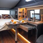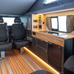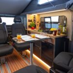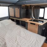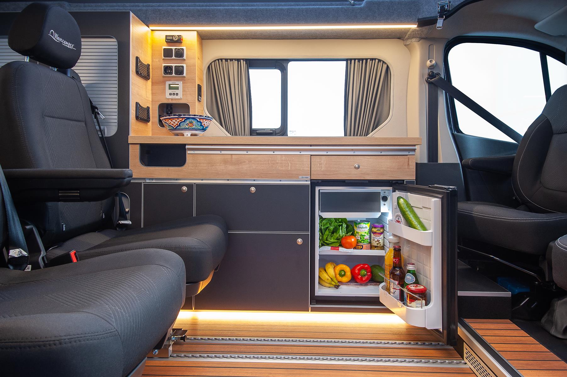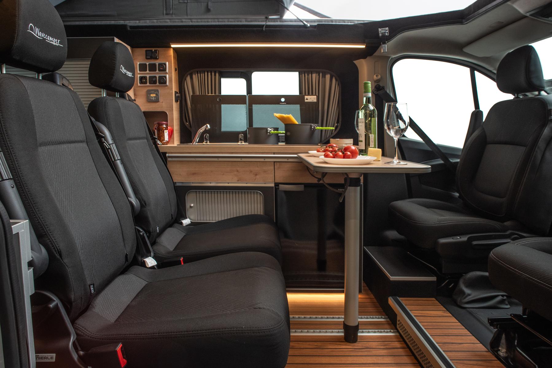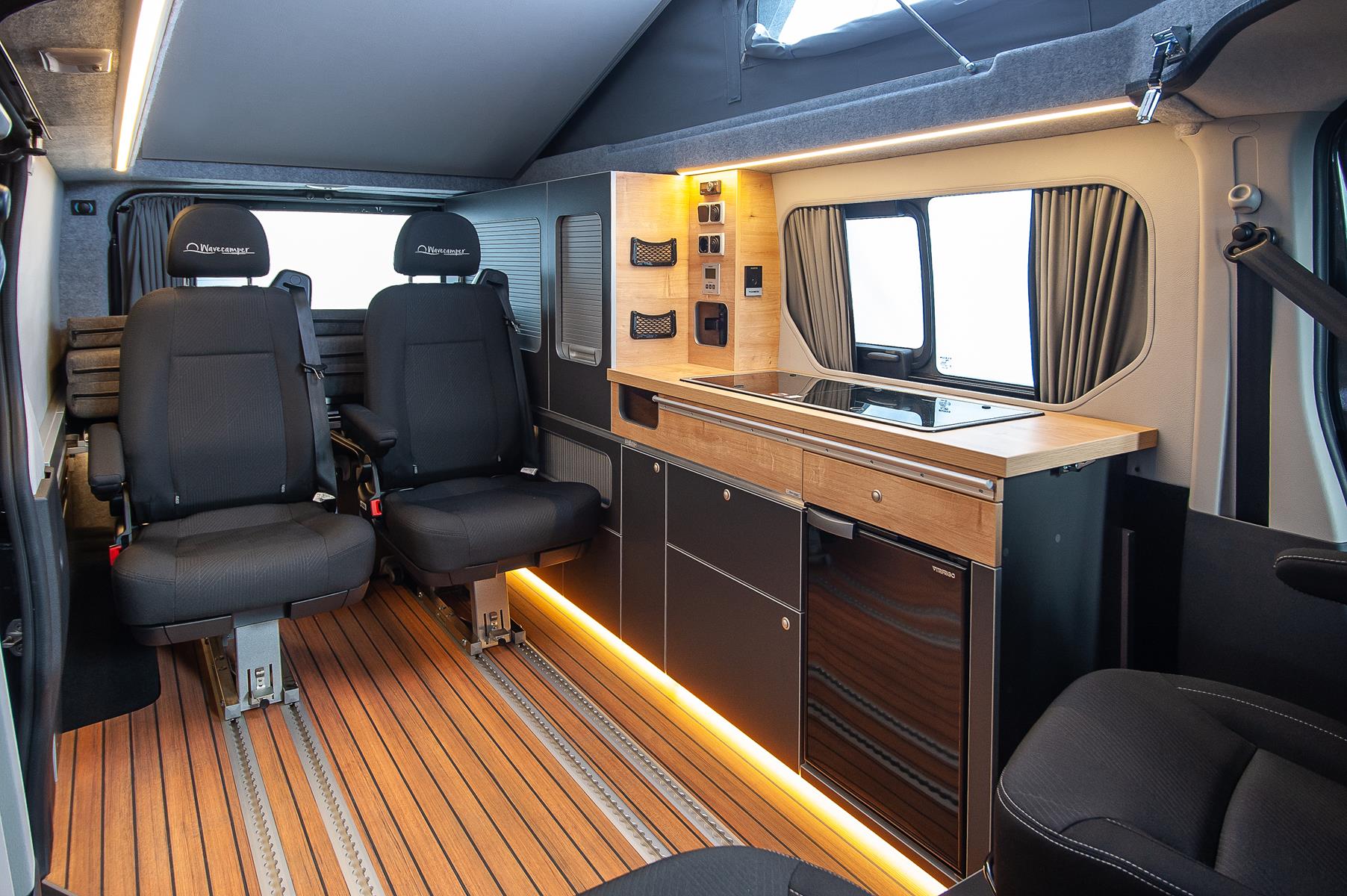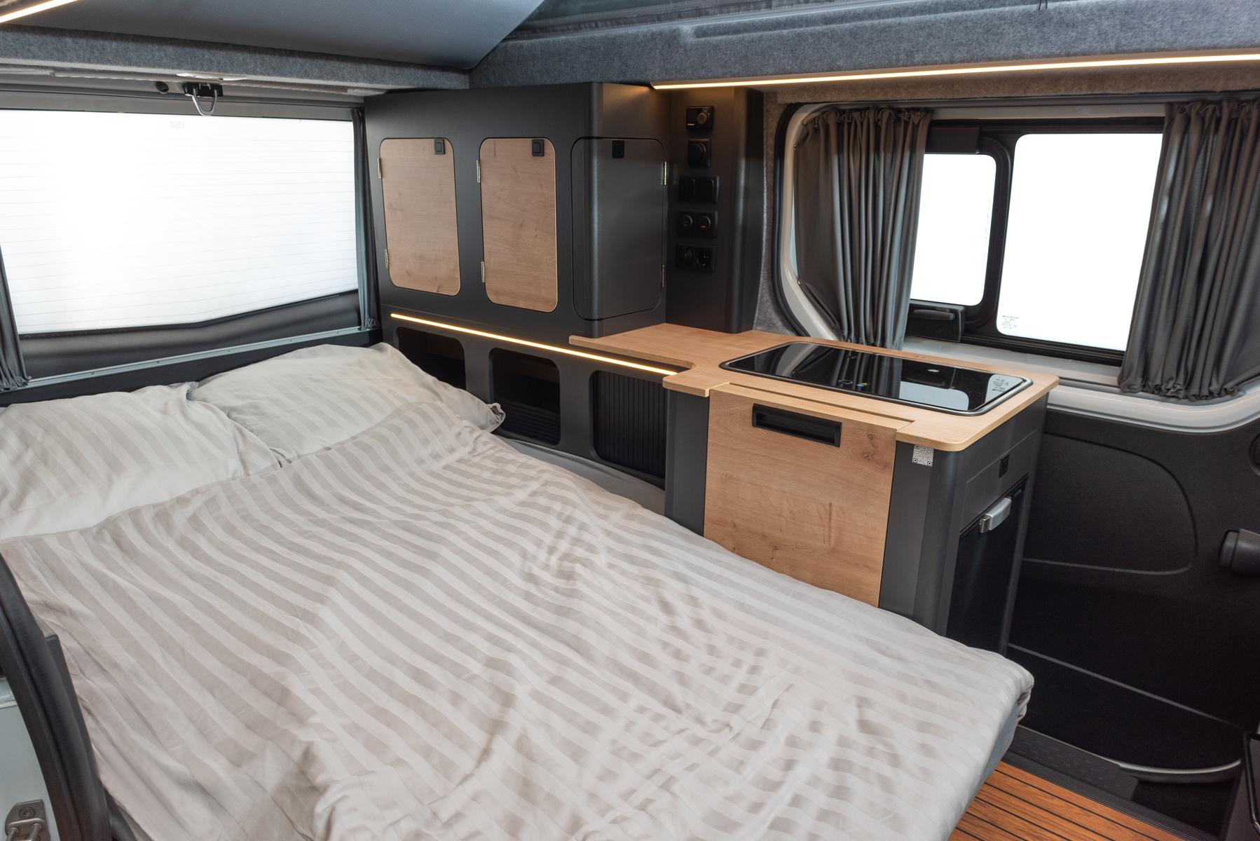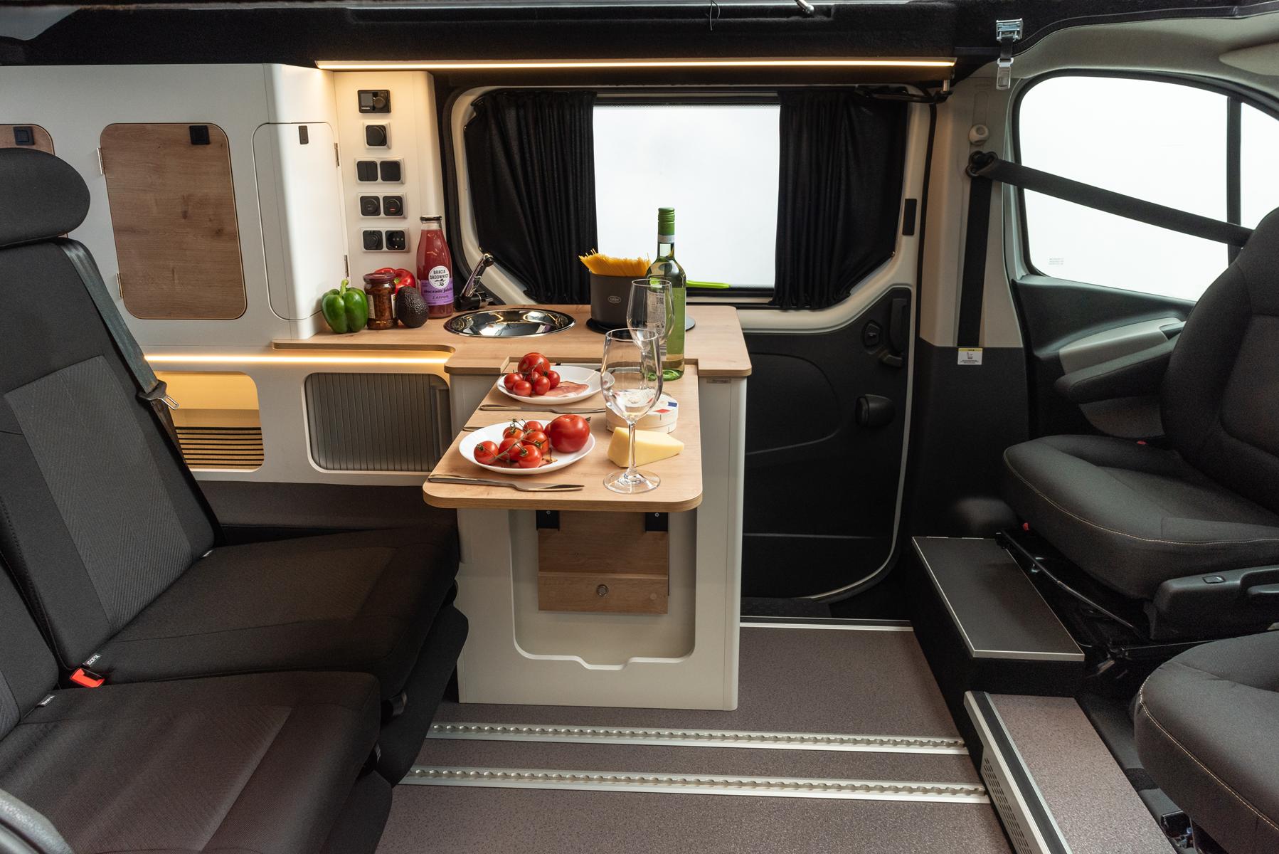 A new model featuring sliding doors on both sides of the vehicle and convenient outside access to the kitchen. Its innovative seats not only convert into a bed but also provide outstanding comfort for relaxation.